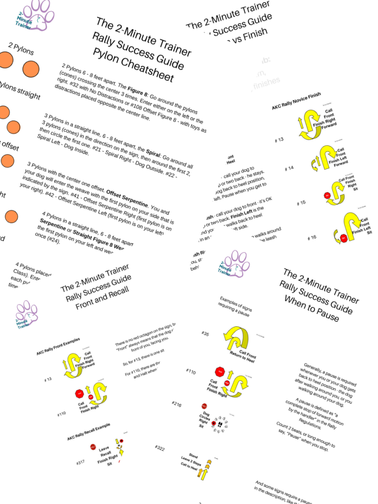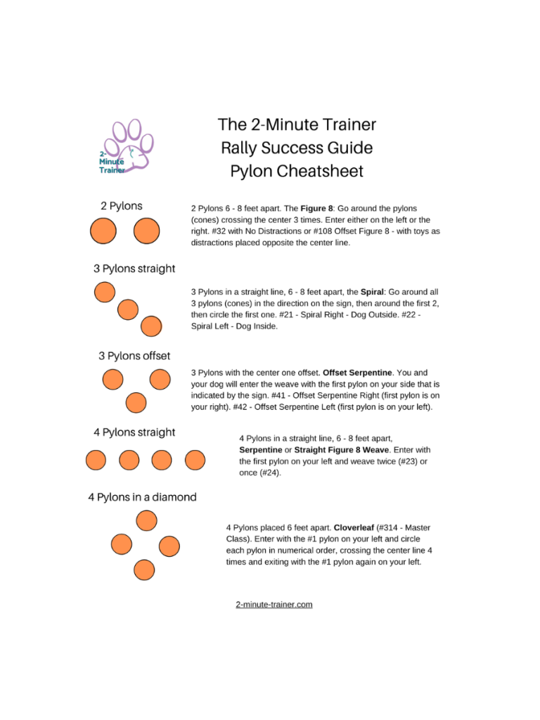 Pylon Cheatsheet – know your pylon signs. Don’t be confused when you see a sea of orange cones. The Pylon Cheatsheet has all AKC configurations. $2.95.